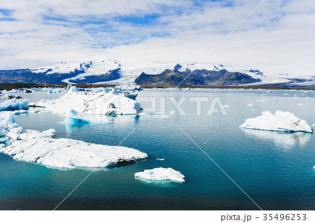 View of Oeschinen Lake in the Swiss alps with beautiful turquoise water.