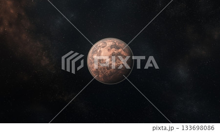 Rocky planet in deep space with starry background