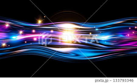 Abstract light reflections with colorful illuminated curves and bright stars