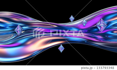 Vibrant iridescent abstract waves with sparkling stars in pink and blue hues