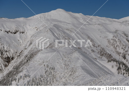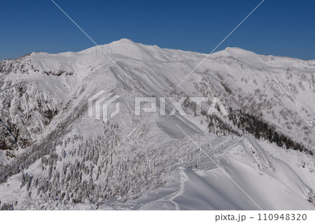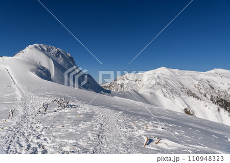從劍峰山到釜村山的山路看到冬天的谷川山
