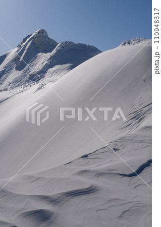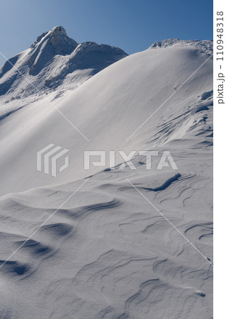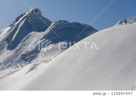從劍峰山到釜村山的山路看到冬天的旭岳