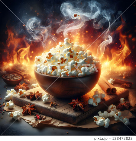 Gourmet Popcorn Art with Dynamic Smoke Effect