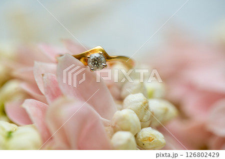 Gold ring , Wedding ring,Diamond ring on the flowers.