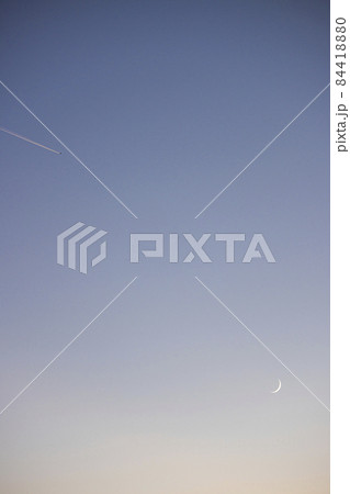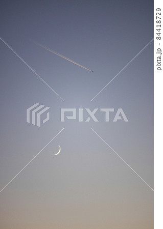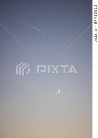 黃昏的凝結尾跡和新月