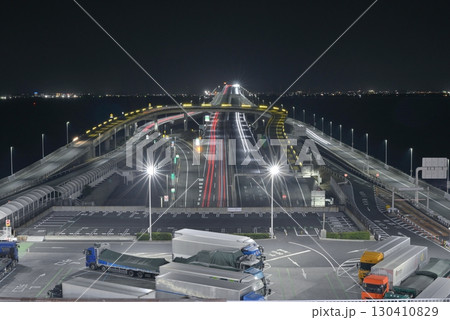 東京灣Aqua-Line海螢堡木更津側的觀景台夜間追蹤車轍