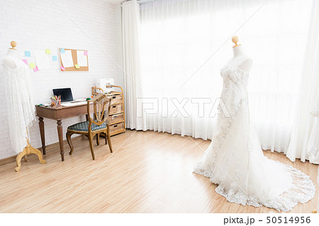 White dress in the studio.