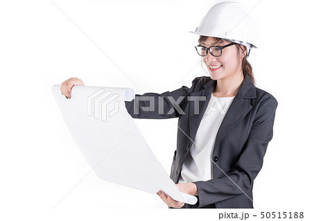 Businesswoman engineer smile and holding blueprint