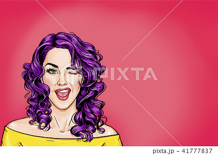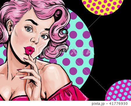 Pink head, angry girl, Pop Art style.Pop Art girl.