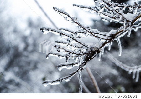 Branch in ice glaze winter December photo.