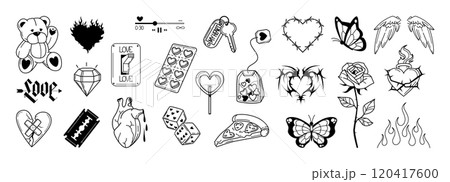 Neo tribal shapes. Y2k trend, gothic abstract elements