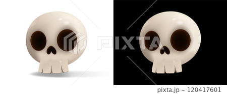 A cute and slightly spooky cartoon skull with large hollow eyes and a rounded shape