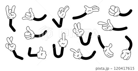 Cartoon hands with four fingers, classic style from the 30s, cartoons and comics
