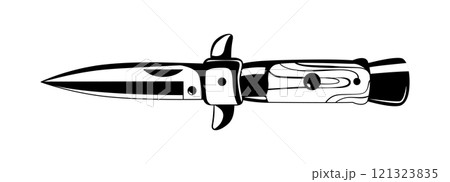 Isolated black and white illustration of a switchblade knife with a sleek