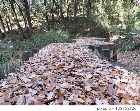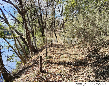 冬季健行,陽光透過樹葉灑下斑駁的光影。