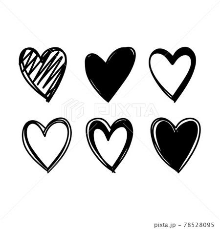 Hand drawn hearts brush stroke doodle black texture set vector