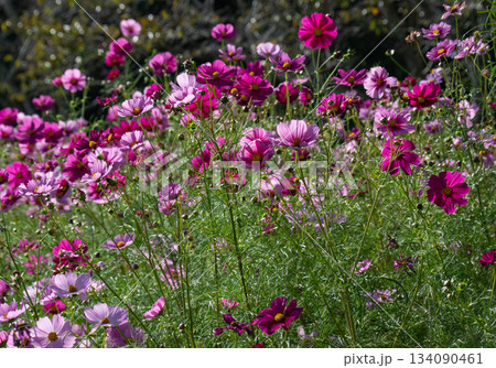 秋日陽光下盛開的波斯菊