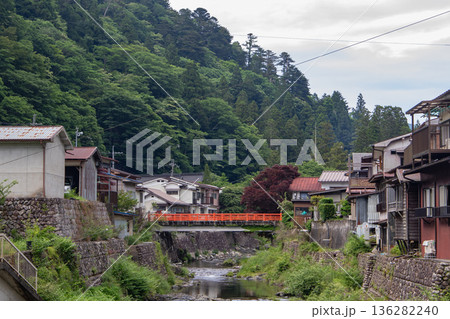 從空中俯瞰,日本鄉村被鬱鬱蔥蔥的青山環繞。