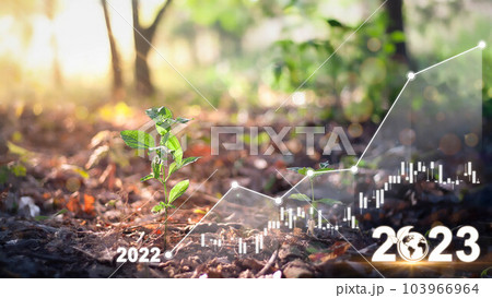 new year 2023 with nature. Green business, Sustainable development on renewable energy and growing ecological on green energy. social and governance and impact investing. sustainable, funds, internet