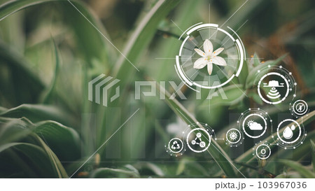 IOT with Futuristic ai technology concept icon on blured nature background, Sustainable, energy, medicine, Natural herbal remedies, Application, agriculture, Metaverse, big data, report, analysis.