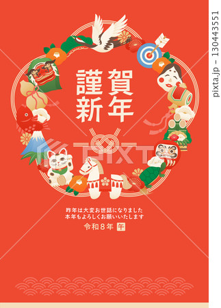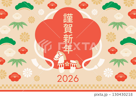 2026年馬與注連繩新年賀卡模板_紅色