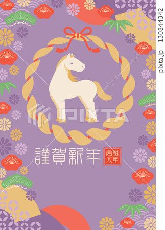 2026年的馬和注連繩新年賀卡模板_紫色