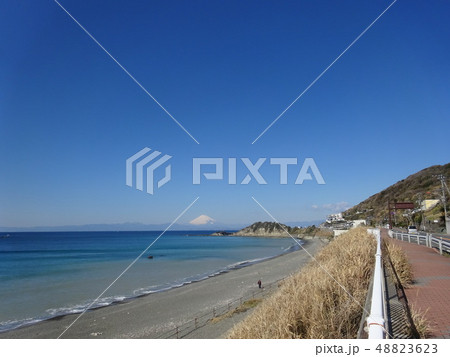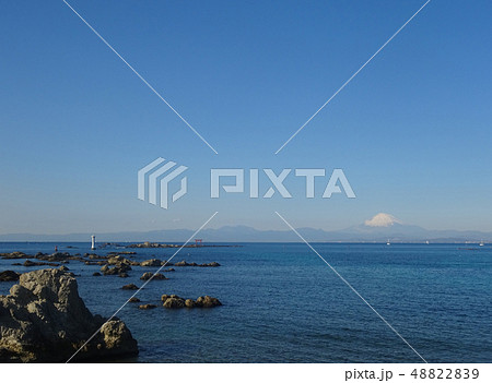 從Morito神社和富士山的鳥居和Yujiro燈塔