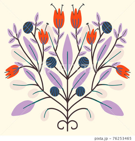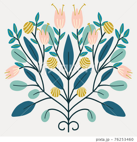 Folk art Scandinavian symmetric design. Retro floral folk art pattern