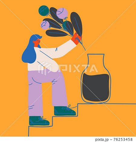 Flat cute girl walking with floral vector