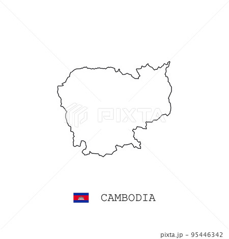 Cambodia vector map outline, line, linear. Cambodia black map on white background. Cambodia