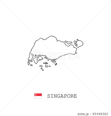 Singapore vector map outline, line, linear. Singapore black map on white background. Singapore flag