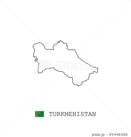 Turkmenistan vector map outline, line, linear. Turkmenistan black map on white background. Turkmenistan flag