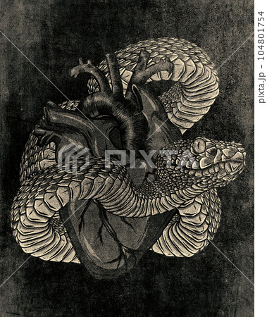 Viper snake. Hand drawn illustration in ink technique on grunge background