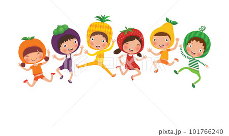 illustration of kids and fruits, healthy food for children cartoon vector