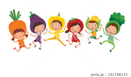 Variety of children with vegetable, nutrition for kids, vector, illustration