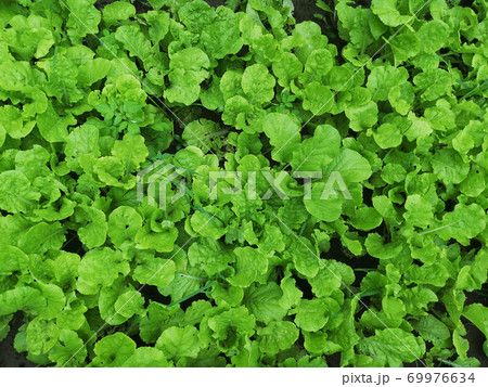 Organic leaf lettuce in the garden, Salad greens top view, Green natural background