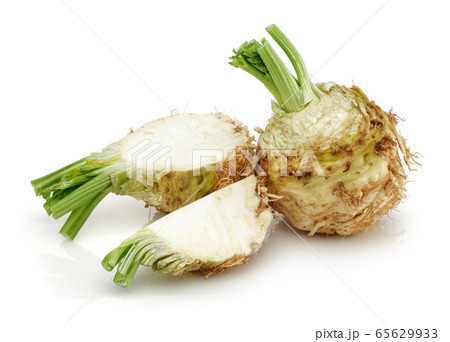 Fresh celeriac with leaves isolated