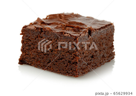 Slice of brownie isolated on white