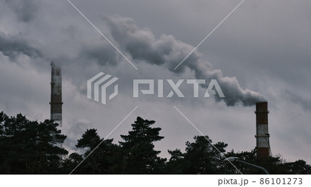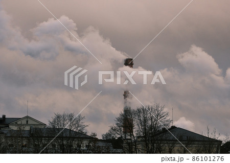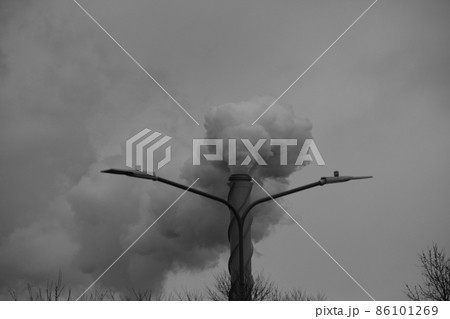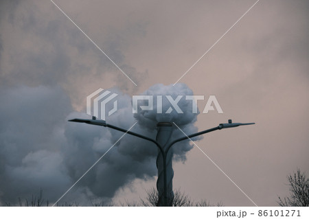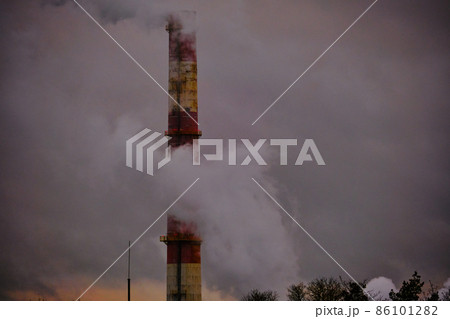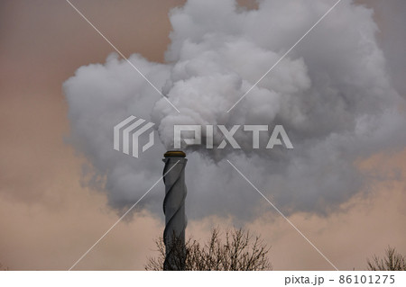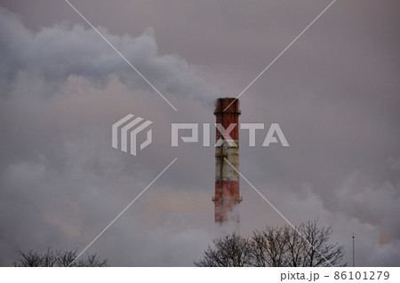 Air pollution, closeup of one big smoking pipe on the winter sky