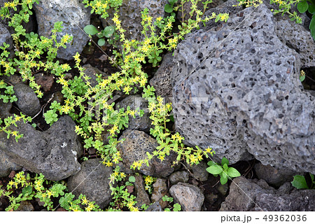 這是濟州島玄武岩和兩者之間長大的游泳池的照片。