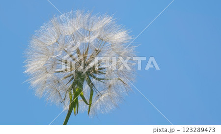 Dandelion Seeds On A Beautiful Background. Dandelion Seeds Background. Dandelions Flower Head Has Transformed Into A Perfect Sphere Of Seeds. Slow motion.