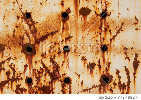 Texture of a rusty metal surface with holes, closeup