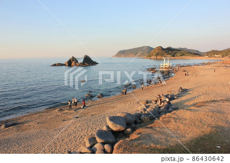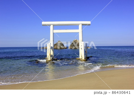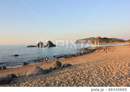 糸島|二見浦|白鳥居|大海|日落|自然|岩石