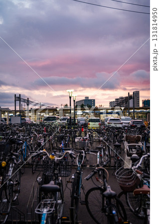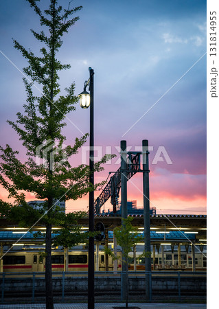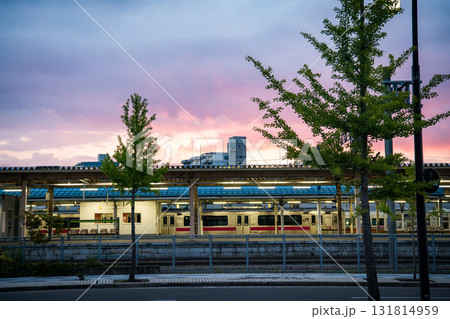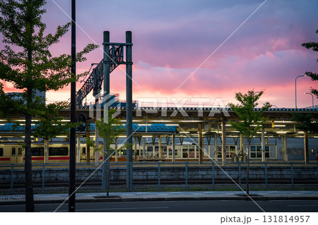 Aomori street and train station at sunset, in Japan