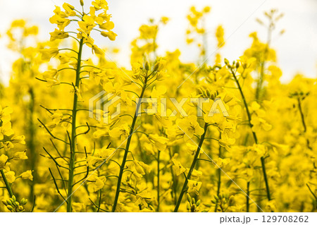 Bright yellow flowers in a field creating a vibrant natural landscape with soft sunlight