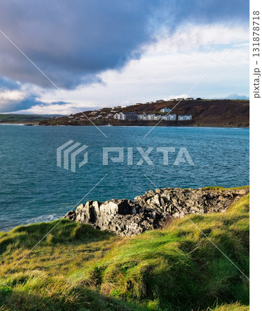 Coastal town sits on a hill along the Wild Atlantic Way near Inchydoney Island in Ireland.