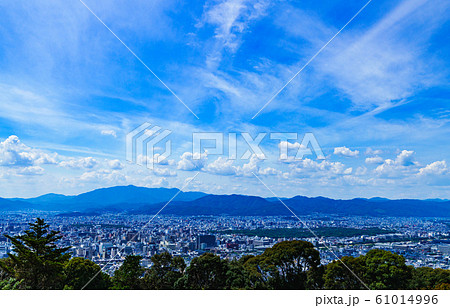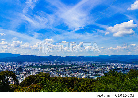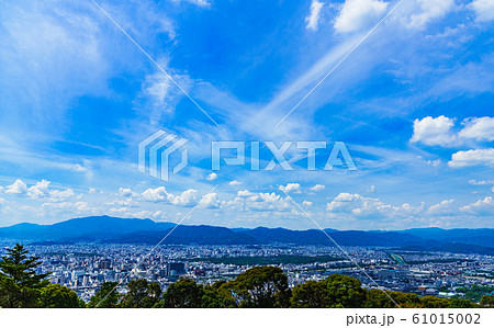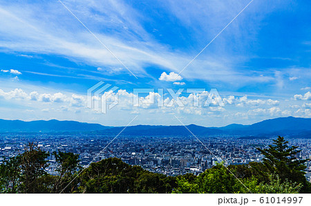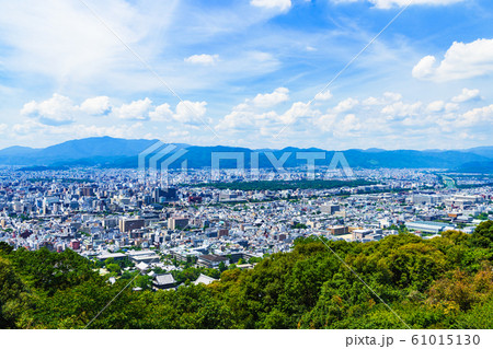 [日本的觀光圖像]在藍色的夏日的天空下從東山俯瞰京都市的風景