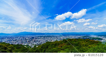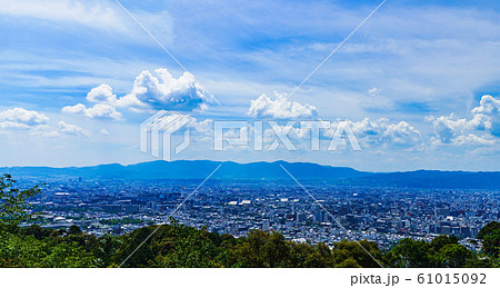 [日本的觀光圖像]在藍色的夏日的天空下從東山俯瞰京都市的風景