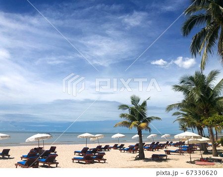 Beautiful coconut trees and skies are perfect for creating a background image and a bright, comfortable atmosphere.
