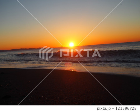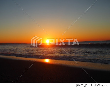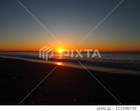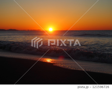 2022年日出 湘南海 沿海海 沿海沙灘 橙太陽
